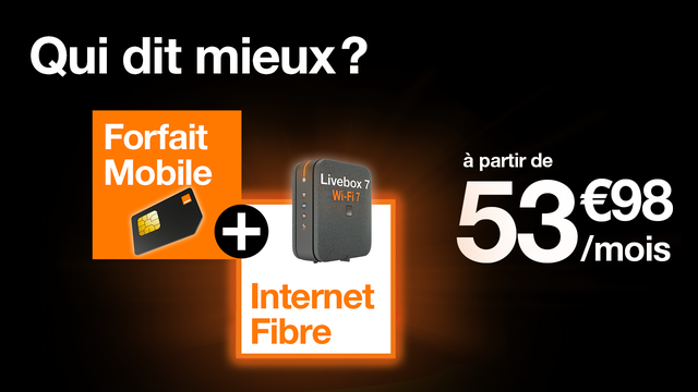 Regroupez vos offres Mobile + Internet Fibre chez Orange et bénéficiez chaque mois d’économies sur votre forfait mobile.
